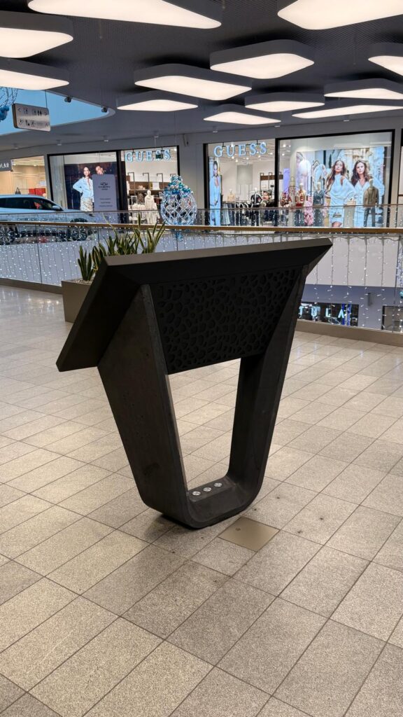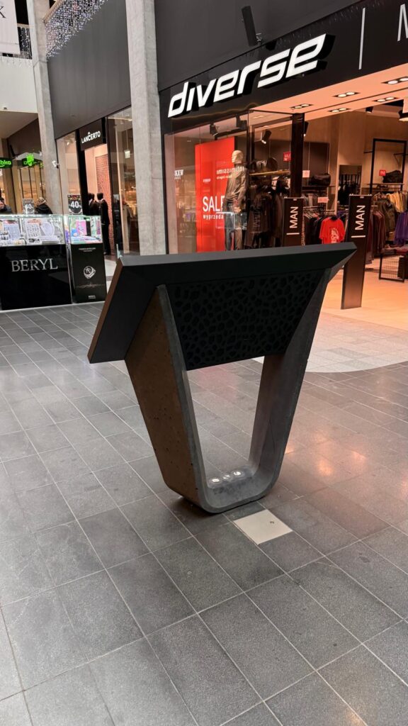W ramach realizacji w jednej z warszawskich galerii handlowych firma GAAG – Producent betonu architektonicznego wykonała prefabrykowaną podstawę do kiosku multimedialnego. Projekt wymagał odwzorowania nietypowych kształtów „nogi” elementu, co wymagało stworzenia specjalnej formy do odlewu betonu architektonicznego.